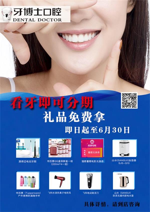 【看牙分期付款】免费领取电动牙刷、加湿器等多重礼品! “世界之大唯有美食不可辜负” 这是吃货的口头禅 人生无牙淡如水、有齿能嚼天下味! 你殊不知很多人饱受缺牙之苦 最新的一项流行病学调查结果显示 1、25~44岁的中青年人群