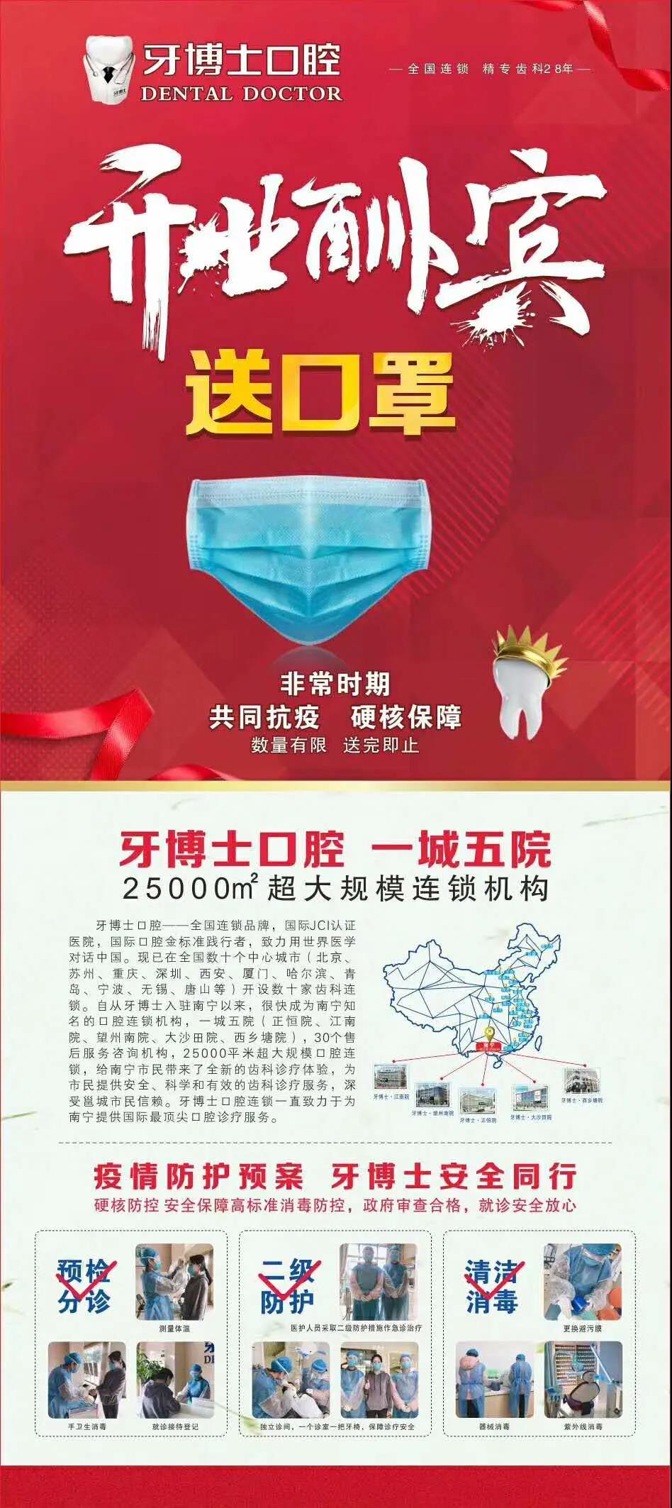 “共同抗疫,守护南宁,拥抱美好”活动特惠 防控疫情,人人有责, 牙博士口腔积极履行社会责任, 迎难而上,与全国人民一道共同抗疫, 与南宁市民一起守护南宁, 齐心协力拥抱美好生活。