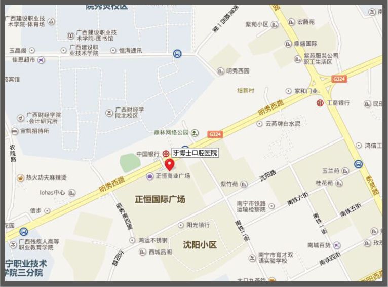 【医院地址】:南宁牙博士口腔(正恒院)西乡塘区明秀路111号正恒国际广场(广西财经学院对面、天桥旁)